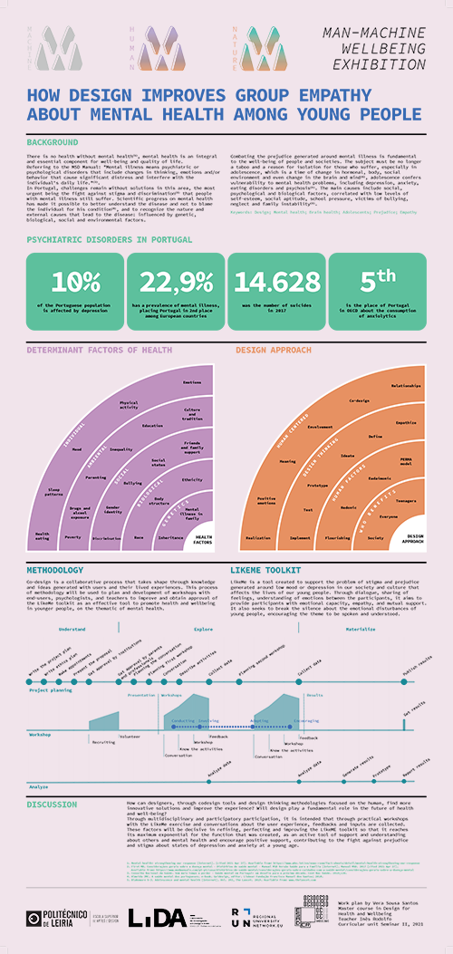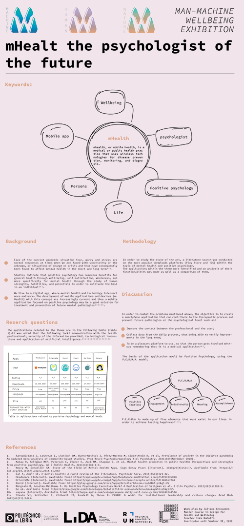 The symposium MW Man-Machine Wellbeing introduced and promoted the master course in design for health and wellbeing at ESAD.CR. It also fostered possibilities for other research lines. The MW debated sustainable futures that addressed Human-Machine Interfaces (e.g., autonomous driving), Human-Computer Interaction, Brain-Computer Interfaces, Human-Robot Interaction, Mixed Reality and Biomaterials.